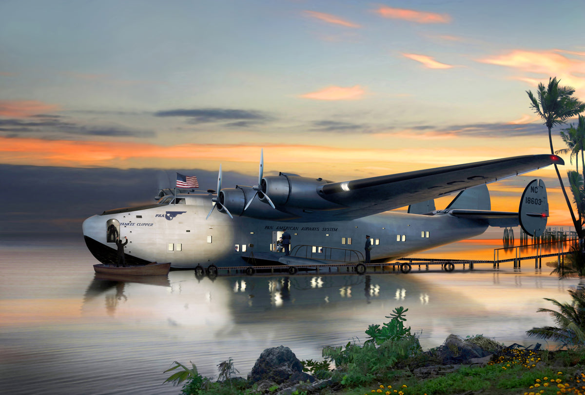 Pan American Airlines Boeing 314 Yankee Clipper. Originally a commissioned painting. Signed and numbered. . ABOVE: 24 x 36 print on metallic paper, matted and framed, for pilot Paul Johns's...